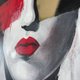 Abstract Female Acrylic Painting Red Lips Wall Art Original Black and White Art - 壁貼/牆壁裝飾 - 壓克力 灰色