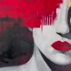 Abstract Female Acrylic Painting Red Lips Wall Art Original Black and White Art