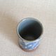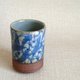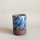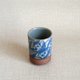 この作品は、信楽の土を使いろくろで作った湯のみに、呉須絵具でつる花紋を丁寧に手描きしています。持ちやすく口あたりが滑らかな湯のみです。