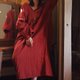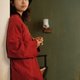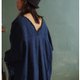 袍子是在一個想像中設計出來的,用了這款粗礪的近似手織布的面料,領口、袖口、下襬的毛邊展現面料的粗狂感。