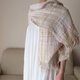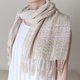 作品は多様な糸で制作している一点物です。均等均一ではなく、縮絨後のゆがみ・ちぢみもございます。手にしてくださった方が、やさしさとあたたかさに包まれますよう、慈しみ大切に手織りました。糸それぞれの特性を愛でていただけましたら幸いです。
