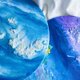 The hues of blue and white embody its joyful energy, overcoming suppressed reality and enjoying freedom by using blue color as the symbol of freedom. The bumpy texture signifies life's journey, which is more challenge.