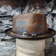 Each hat is hand-finished to highlight the natural textures and rich brown tones of Crazy Horse leather, ensuring every piece is one-of-a-kind.
