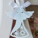 Hanging angel ornament in light blue color with ribbon. Angel ornament with dot-painted white and silver color has a slight shimmer.