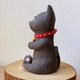 •陶作品可水洗(此物件要避開脖子的紅色布材和金屬鈴鐺),或以濕海綿擦拭陶與釉面,擦乾後通風處晾乾。