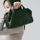Supportingrole簡約線條百搭輕量真皮手提肩斜背旅行波士頓 黑