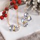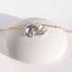 二粒の間には純金粉を蒔いています。接着部分も一つの装飾として魅せるデザインです。金粉を蒔いた後、仕上げに天然石を使った専用の道具(瑪瑙へら)で磨き上げ、上品な質感に仕上げた一品です。