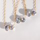 シルバーグレーに染色されたパールは、ピンクやブルーの干渉色も見られ実に華やかです。メタリックなほどの強い照りは、室内でも光を放ち、素肌を美しく魅せてくれます。