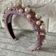 可愛復古頭箍——青春、活潑,可愛的小珍珠和各色碎石,搭配亮麗的粉紅色復古風格頭箍,嬌俏可人,(有減齡之效)