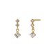 這對漂亮的耳環上有兩顆垂直排列的鑽石和一顆搖曳的白色托帕石。兩顆鑽石精巧地連結在一起,每一顆都十分突出,雖然它們很小,但在你的耳邊卻依然能形成強烈的存在感。白色的黃玉在下面搖曳,更增添了水潤清新。鑽石的銳利光芒和白色托帕石的閃爍光芒隨處可見,華麗的黃金在臉部周圍營造出明亮的印象。方便日常使用,也推薦作為禮物。