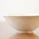 陶土らしい荒さと温もりを感じられる白陶土と、毎年収穫される稲藁を原料に独自調合された藁灰釉を組み合わせた飯碗です。