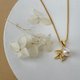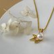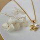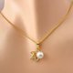 7-7.5mm的akoya珍珠表面泛著淡淡的白透櫻花粉色的天然光芒。紗織小姐為其配以 S5925銀為主體表層14K注金的鏤空寫意的逃跑的星星造型配件。讓小巧精緻的akoya的天然光芒呈現出富有層次感的光彩,戴在胸前更強調清秀美好的鎖骨輪廓,也表現出職業女性的干練與精緻,還有一點長不大的女生的俏皮感。