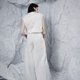 設計細節上在一邊褲頭延伸兩根活褶至下擺從中一刀剪開,解構來增加視覺層次外,也以西裝袋唇式口袋加以收邊,兩根活摺導向改整體用料上,選用華懋出產的 Cool Jade 2.0涼爽玉 涼感紗線製成,成品穿著上體感特別涼爽,並含有超細面料手感、抗UV紫外線並減少異味的特色,是陪您度過夏天的好夥伴。為向內摺,讓整體造型帶有一點日式風格的層次感,整體造型帶有極簡大氣的都會氛圍;;