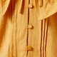 袖口採 鬆緊設計的糖果袖(キャンディースリーブ),可依喜好微調長度,搭配前身的 細緻打褶(Pin-tuck)工藝 與 花形鈕釦點綴,讓整體多了幾分柔美與華貴。