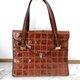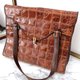 來自意大利的啡色鱷魚皮袋,上面的圖案由拼皮製成,方形設計增加容量,前後都有大口袋,大概可放A4對摺的文件。內部材質也是真皮,打開上方有 Niki Milano Italy 的金屬標誌,有一個大主隔層,可容納11 吋平板電腦,再配上一個大拉鍊口袋。雖然它的容量大但很輕盈,可以手提或作單肩袋,非常適合工作使用。 產地:意大利 年份:不明 材質:真皮 狀態:非常好,沒有明顯瑕疵 尺寸:底 28 x 12 cm / 高 22 cm *所有貨品於香港出貨 **復古品經過年月洗禮會有瑕疵,下單前請注意寶物狀態