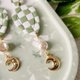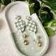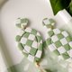 💚【原創手作】Ocean On The Moon - 綠方格盤珍珠月亮軟陶耳環/夾