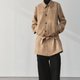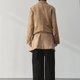 客製復合麂皮絨面料,兼具挺括外觀與輕量保暖性能。強調肩部與袖籠的結構感,通過簡潔的線條和微弧下擺平衡視覺重量。領口與門襟設計保持干淨利落,可搭配不同內搭適應多種季節轉換。