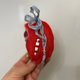 The baby has a cute bow with a gilded medallion (bow on a pin, can removable).
