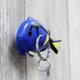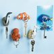掛勾背後有強力磁鐵,你可以吸附在冰箱、鐵門或任何鐵板上方,如果你想掛重物,掛勾背後也有開孔設計,你可以鑽牆或用無痕掛勾掛著,藍倒吊魚的魚鰭是立體設計,所以可以在上面掛鑰匙或橡皮圈等圓形的小物。超級實用喔!