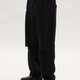 鬆緊腰頭提升穿著舒適度,亦可搭配皮帶變化造型。正面腰頭雙條帶以日本製舊黑素面月桂釦固定,延伸早期吊帶褲意象,強化結構與個性。側邊拼接粗條帶與微光澤舊感燈芯絨,形成材質對比,拉長前後比例。後側不對齊半梯形口袋內附壓釦,兼顧機能並凸顯臀部視覺焦點。整體風格柔軟舒適且富設計語彙,日常與造型穿搭皆宜。