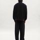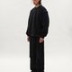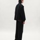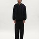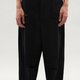 主體採斜紋織法的混紡布料,具自然紋理與良好耐磨度,手感親膚柔軟,呈現沉穩且帶鬆弛氣息的質地。西裝長褲以俐落壓線為基底,直筒版型加入立體比例調整,膝部設計破壞線,打破單一線條,增添細緻層次。