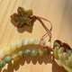 - A warm brown and olive green jade bracelet with a hand-carved rose and double strands of golden-green jade beads. Finished with a maple leaf charm that carries the calm beauty of autumn. 🌿✨