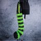 - Neon Green Cheshire cat tail - approximately 35 inches long - made of top quality faux fur - decorated with removable bat wing bow with a Catzo Green Skull enamel pendant - the tail is attaching by an elastic belt loop with a wide double-sided ribbon to go on the waist - has a lobster clasp for attaching to clothes