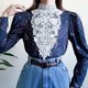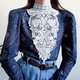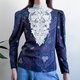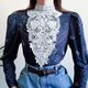復古 1980 年代維多利亞蕾絲高領襯衫,泡泡袖,佩斯利和花卉印花襯衫,紐帶襯衫