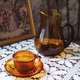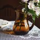 琥珀色玻璃賦予器皿濃厚的復古風格,適合作為水壺、果汁壺,或用來盛裝各類酒飲,