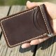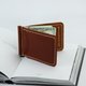 Small pocket metal clip for money and credit cards is made of Crazy Horse genuine matte leather, which has an elegant look and is very pleasant to the touch. It has a minimalistic and versatile design. This pocket wallet is suitable for both men and women. The business card holder will be convenient both in everyday use and when traveling, because it does not take up much space, the purse fits easily in your pocket and is very roomy. It will fit: 4-8 credit cards; cash.