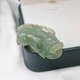 ►料子冰透,尤其耳朵跟如意部分都起光了,種水非常好,面部是比較凶猛的貔貅!