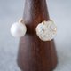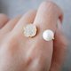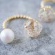 左右に飾りがついたフォークリング。クリスタルパールとオリジナルのドライフラワー入りパーツを組み合わせました。繊細なレースフラワーのお花が入ったパーツにはホログラムも混ぜているので、キラキラと手元で輝いてとても綺麗です!
