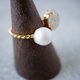 https://live.staticflickr.com/65535/52462304906_e1fca85749_c_d.jpg レースフラワーのお花をドライフラワーに加工して、樹脂で閉じ込めたオリジナルパーツを使ったデザインリング。 https://live.staticflickr.com/65535/52462575864_155c7e01e5_c_d.jpg リングはアーム部分がツイストされていて、アルファベットの「C」のような形になったフォークリングです。 左右に飾りがついていて、一方はクリスタルパールともう片方には、ドライフラワーを閉じ込めたビジュー調のパーツを組み合わせています。また、ホログラムも少しだけ混ぜているので、角度によってキラキラと輝きます。 https://live.staticflickr.com/65535/52462840898_c99909f093_c_d.jpg サイズは、日本サイズで約11号。フリーサイズなので多少の調整が可能です。 サイズを変更する際は、ゆっくりと調整してください。急に力を加えると、メッキ加工が剝がれるなど破損の原因になりますので、ご注意ください。 https://live.staticflickr.com/65535/51180720894_10d64d36bf_c_d.jpg サイズ調整ができるリングはプレゼントにもおすすめです! 有料ギフトラッピングをご希望の方は、専用のボックスへ入れて ラッピングをしてお届けいたします。 https://live.staticflickr.com/65535/52476648299_f3f814fc7c_c_d.jpg ギフトラッピングは通常ゴールドカラーのリボンでラッピングさせていただきます。 また、11月からはクリスマスカラーのリボンでラッピングいたします。 https://live.staticflickr.com/65535/52461433637_358bea2615_c_d.jpg 色違いやその他のリングはこちら https://jp.pinkoi.com/store/schaf?category=2&subcategory=202 【素材】 メッキ製 【サイズ】 日本サイズ:11号フリーサイズ 【注意】 ・製品の特性上、硬化の際に起こる歪みや、小さな気泡等がございます。予めご了承ください。 また、小さいパーツを直接触り加工するため、指紋や空気中の埃が入る場合がございます。細心の注意を払っておりますが、ハンドメイドの為ご了承ください。 ・商品の特性上、紫外線により徐々に退色致します。日常でご愛用いただき、経年変化をお楽しみください。 ・本商品のチャームは天然植物を使用しています。1点物の為、色の濃淡・大きさ・形等は個体差がございます。また、形や風合いなどはご指定いただけませんのでご了承ください。 ・高温多湿・強い直射日光をお避け下さい。劣化の原因となりますので、保管の際は、不織布などで包み日陰で保管してください。 ・本商品はとても繊細なつくりになっております。衝撃等加えますと、欠け・折れ等破損原因となります。 お取扱いにはご注意ください。 (C) 2014-2022 schaf*