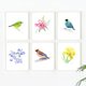 北歐花鳥水彩畫復制畫**6件組合畫**,自然療愈系列裝飾畫。