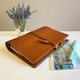 新品上市 !Bambini Nº 9 熱銷經典艾曼紐系列 -琥珀色。義大利植鞣經典油蠟皮革。琥珀色如同精釀啤酒般的色澤,明亮而不刺眼,令人難以抗拒。皮革本身有天然的紋路,每一張都是獨一無二。此款艾曼紐繞帶式皮革筆記本,特別加大的扣環部分,依舊優雅且細緻。以米色法國 FIL DE LIN AU CHINOIS 麻線手工縫製。細緻的手作皮革筆記本,經典耐用。寵愛你的書寫時光。出貨含內頁紙張。