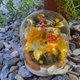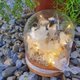 微景觀公仔花禮想傳達動物們自在無憂的生活在大自然,也希望人類可以還給萬物一個純淨的生存環境。玻璃罩尺寸為8.5*9cm的柱形花禮,搭配外接鈕扣電池串燈,擺在臥房或書房,白天欣賞花的姿態,晚上還可以當小夜燈使用。