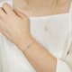 這款新穎的手鍊靈感來自波光粼粼的海面。兩面玫瑰切割的藍色托帕石(十一月誕生石)閃耀著彷彿盛滿水一般的光芒,細膩閃耀的鏈條則表現著水面的倒影。寶石以黃金鑲嵌,凸顯其整齊的圓形輪廓。它也很容易使用,因為您不必擔心前面或後面,並且可以使用調節鏈來調整長度。