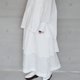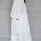 這款米白襯衫以潑墨純棉與透膚亞麻巧妙拼接,質地輕盈且具視覺層次。袖口拼接透明感亞麻材質,增添通透氣息;半門襟設計讓穿脫更為便利,也增添復古細節感。領口以抽皺荷葉邊設計呈現柔和輪廓,為整體造型注入優雅浪漫氛圍。