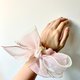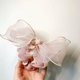 紗布的材料邊更加入魚線,束起頭髮時,使其蝴蝶結依然是延身的。