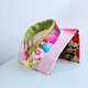 表面 : 優しいピンクのグラデーションに、美しい花柄や縞模様の襟元が、優雅な着物姿を彷彿とさせます。