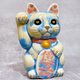 日本清水燒招財貓 花結晶 縹 億万両 右