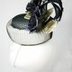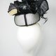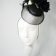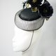 以厚棉樸造的帽子外包白色絲綢,再包上黑色網布和硬紗造出層次效果。
