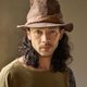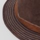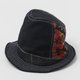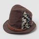 尼泊爾深山村莊製作的水牛皮和提花組合帽子。提花織物上採用了一種名為「狼嘴」的圖案,這種圖案經常用於基里姆地毯上,意為抵禦邪惡。