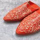 - **帥帥的摩洛哥手工皮鞋,從鞋面雕花到鞋子分片成型都是純手工 精緻的摩式雕花看得到伊斯蘭文化特有的花草圖騰,牙白色是清真寺內 雕花石膏牆面的顏色**