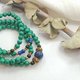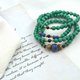 6mm孔雀石加上青金石、黑珊瑚點綴色彩,採用純黃銅隔珠。可繞4圈在手上,有別於以往制式的108顆念珠形式,是念珠也可以是多圈手串呦~