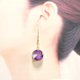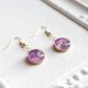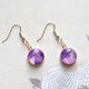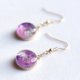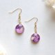 パールホワイトに二種類の紫色を置いた、淑やかで上品なピアス。