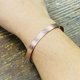 此款手環,表面做上蕾絲花紋,可以在手環的內側,敲上英文或數字,手圍是活動的,可以稍微做調整唷!