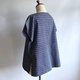 ヴィンテージ着物地を手縫いで仕上げた1点ものです。 フレンチスリーブのような袖のTシャツ風のプルオーバーブラウスです。平置きするとほぼ四角になる、シンプルな形です。 反物を横づかいし、シンプルなフラットな襟ぐりのラインを作っています。 紺色の細かい格子模様の浴衣地から作ります。比較的しっかりとした織りの綿ですが、肌触りがスムーズです。 素材:浴衣地(綿 100%)/ ヴィンテージ ヴィンテージ生地は詳細が不明の場合があります。また、布にいたみ、傷がある場合があります。ご了承ください。 サイズ:フリー (トルソ:L / モデル:167cm) 着丈:65cm 幅:65cm ・寸法の詳細は画像にてご確認ください。 ・手縫いのため1~2cm程度の誤差が生じる場合があります。ご了承ください。 -- Size: https://live.staticflickr.com/65535/53126930485_d25abd7130_b.jpg -- https://live.staticflickr.com/65535/53126930515_f65eab7d9c_b.jpg https://live.staticflickr.com/65535/53126528931_1b40c60696_b.jpg https://live.staticflickr.com/65535/53126528926_19e84a4a2b_b.jpg https://live.staticflickr.com/65535/53126736364_fcff12eafb_b.jpg ------- カワムラソゥイングでは、直線のシンプルなラインでカラダをゆったり包む服を目指しています。和裁の材料取りを参考に、布は極力直線でカットして無駄なく使うことを心がけています。 ------- 一部のはぎ合わせをのぞき、ほとんどの部分を手縫いで仕上げています。 手縫いならではの柔らかい手触り、シルエットをお楽しみいただければと思います。 すべて作家が一人で縫っています。ハンドメイドのためサイズの誤差、縫製のずれなどある場合もございますがご了承ください。 [お手入れについて] 主にヴィンテージの着物地を使っています。 色落ち、色移り、縮みなどが起きやすいデリケートな素材がほとんどです。 お手入れとしては一般的にはドライクリーニングをおすすめいたします。ご自宅でのお洗濯は個人のご判断でお願いします。使用した生地の端切れをお付けします。お洗濯の前に一度端切れでお試しいただくことをおすすめします。 [オーターメイド] オーダーメイドのご相談も承っております。お手持ちの生地などでお作りすることも可能です。一つ一つ手縫いの部分を大切にお作りしています。1~2ヶ月ほどお時間をいただくことがございます。ご了承ください。詳しくはお問い合わせください。 [ラッピング] 無料ラッピングをご用意しました。ご購入の際にお申し付けください。 OPP袋かクラフト紙に包んで、季節によって変わる紐でくくる簡易ラッピングです。 **他のサイトでも販売しております。売り切れの場合がございます。ご了承ください。**