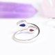 - This double stone ring combines the passionate red of ruby with the serene blue of sapphire, creating a striking contrast that feels both timeless and elegant. Each piece is handcrafted in Bali, making it truly one of a kind. With ruby as the July birthstone and sapphire for September, it carries a special meaning—perfect as a gift or a treat for yourself.