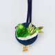運用**剪絨與纏花**的結合,呈現出生動活潑的鳥兒,並搭配其代表色纏繞於波洛領結上,使整體更加俏麗。百分之百純手工製造,在每個小鳥的設計及呈現上都有些許的不同之處,絕對是您身上最美的裝飾焦點。